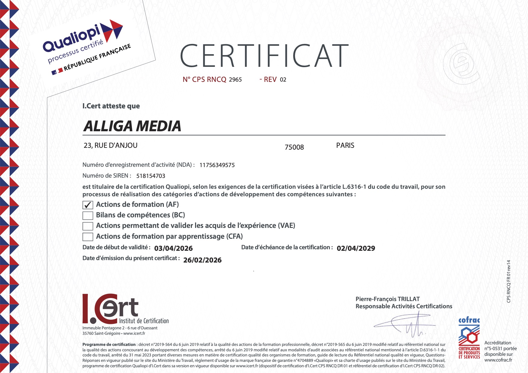 Alliga Media is particularly well prepared and present in the training market for publishers and corporate marketing and communication departments. Alliga Media has excellent expertise in training on Adobe Creative Cloud products and on the main multimedia content management and publishing solutions available on the French, Italian, Spanish and international markets. The Alliga Media group has been on the market since 1992 with its own software solutions and services, but also as a partner and reseller of various third-party solutions.